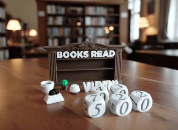Show off your reading progress in style with this unique 3D printed book holder featuring decorative dice and a customizable name. A perfect blend of function and design, this piece adds personality to any bookshelf while keeping your favorite books beautifully displayed.